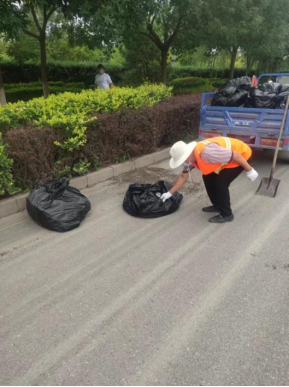 天房公司开展道路及护栏周围杂草清除、护栏刷新、清理道路小广告等工作,全力优化展馆外围环境卫生。