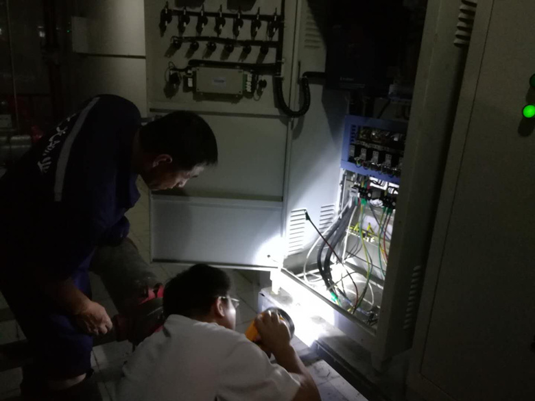 各项目部防汛小组成员迅速赶到各自负责的区域查看排水情况,对小区内的5000余个雨篦子进行疏通,并将安全隐患进行逐一排查。凌晨5点,因用电负荷大、电力设施老化,滨河小区内10栋楼538户居民出现断电情况。面对险情,大龙物业公司领导和专业维修人员第一时间赶赴事故现场,经排查确定停电原因系配电室箱变传感器发生故障。